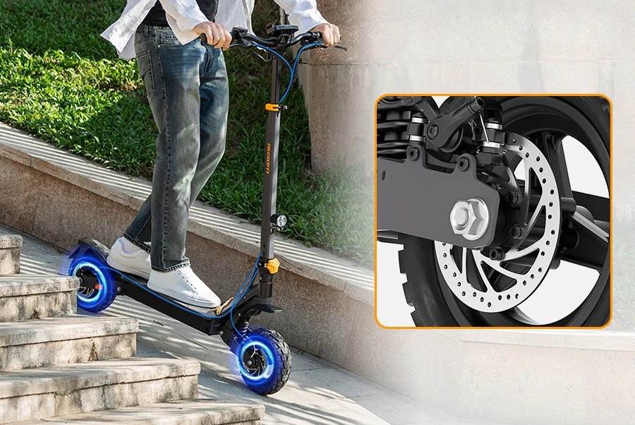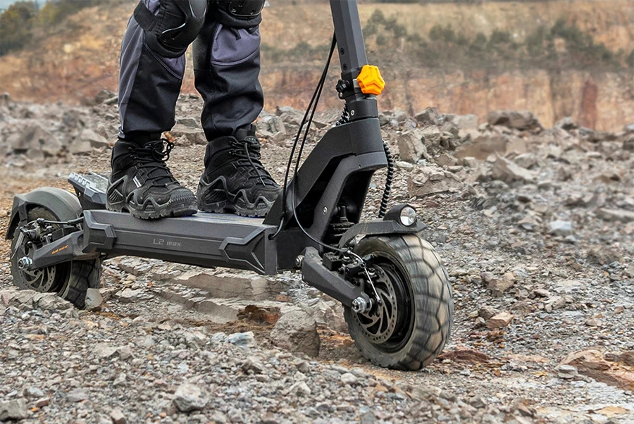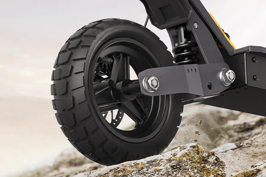 Ebben segítenek a 10 hüvelykes, “tubeless” gumik, amelyek mély mintázattal készültek, így sokféle felületen jól teljesítenek. A defektálló kialakítás és az erős mintázat hatékonyan vezeti el a sarat vagy a havat, aszfalton pedig kimagasló tapadást ad. Magabiztosan használható a legtöbb körülmény között.