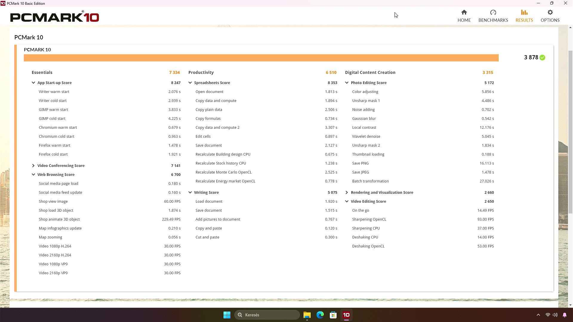 PCmark teszt (3878 pont)