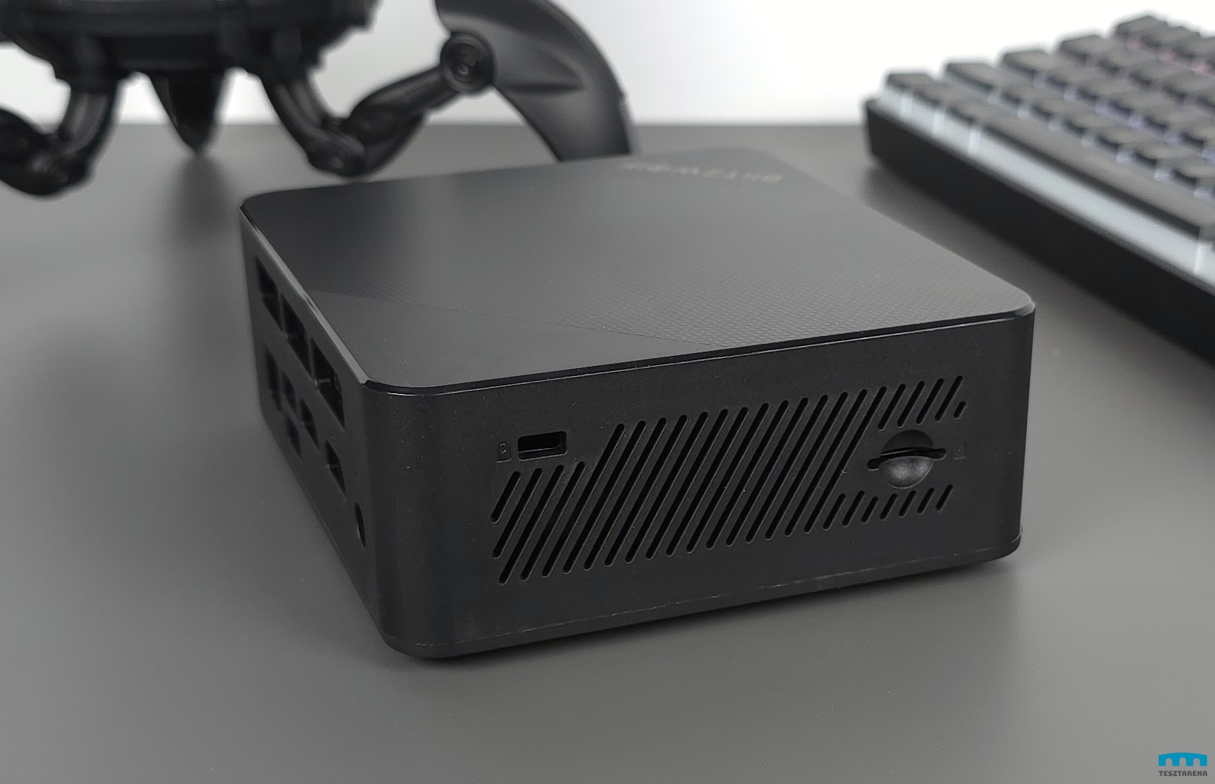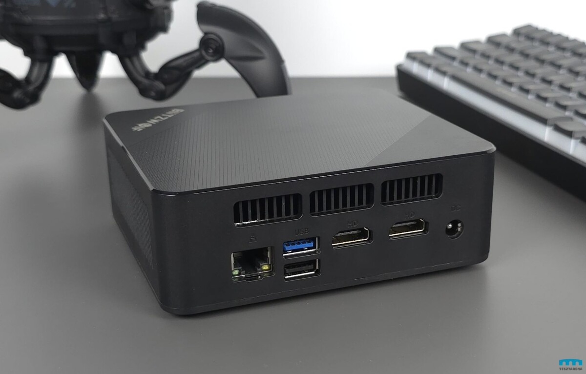 A dizájn szerintem teljesen okés, igazából egy eléggé tipikus fekete mini PC, némi extra dizájnnal a tetején.