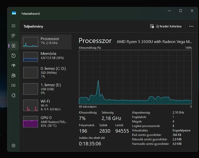 A gépemben egy 16 magos, felsőkategóriás AMD processzor pörög, amitől nyilván messze elmarad nyers teljesítményben a négy magos AMD Ryzen 5 3500U.