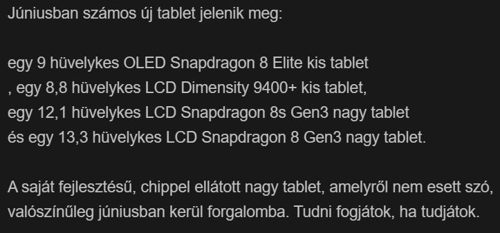 A szivárgás négy új tabletet említ ebben a hónapban, köztük egy nagyméretű modellt ezzel a chippel, ami erősen arra utal, hogy ez a Pad 7S Pro.
