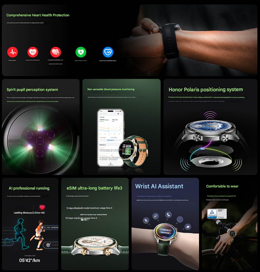Az okosóra átfogó egészségfigyelést kínál a LingTong érzékelőrendszerrel, amely képes a pulzus, vérnyomás és véroxigén szint mérésére, EKG rögzítésére, valamint pulzushullám riasztásokat ad pitvarfibrilláció vagy korai szívverések esetén. Emellett hirtelen szívproblémák kockázatát is szűri, és szív- illetve agyi érrendszeri kockázatelemzést is kínál, Gu Dongfeng professzor csapatával közösen fejlesztve.