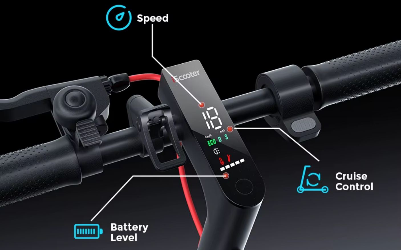8.5″ méretű kerekeket, 350W-os motort kapott és akár 30km/h sebességre is képes. A megállásról tárcsafék gondoskodik.