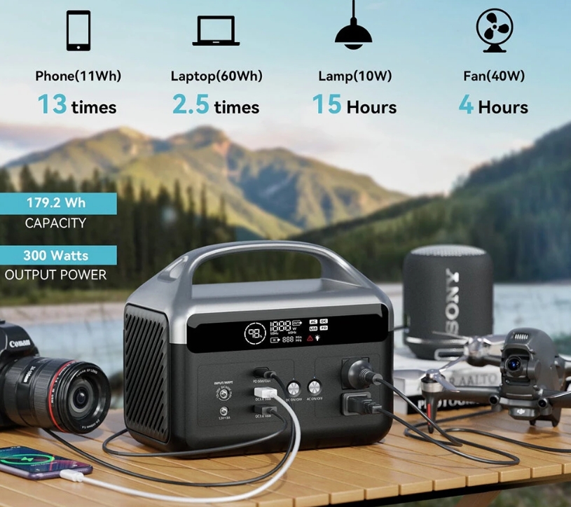 A DaranEner NEOZ 300W egyik legnagyobb erőssége a sokoldalúság. Hat különböző kimeneti porttal rendelkezik, így egyszerre több eszközt is tölthetsz: laptopot, telefont, drónt, hűtőtáskát vagy akár fényforrást is.