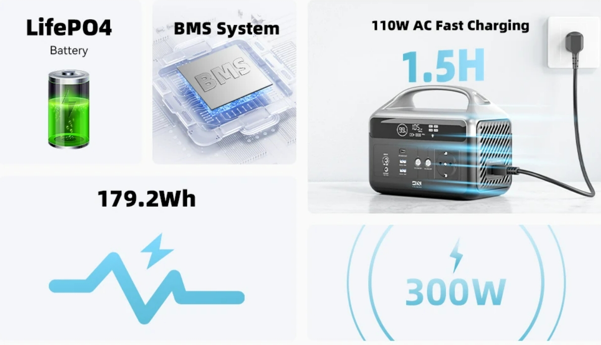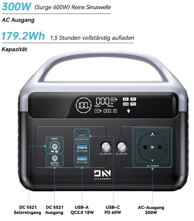 A DaranEner NEOZ 300W megjelenése letisztult, mégis karakteres: a szürke-ezüst kombináció igényes, a lekerekített formák pedig a hordozhatóságot hangsúlyozzák.