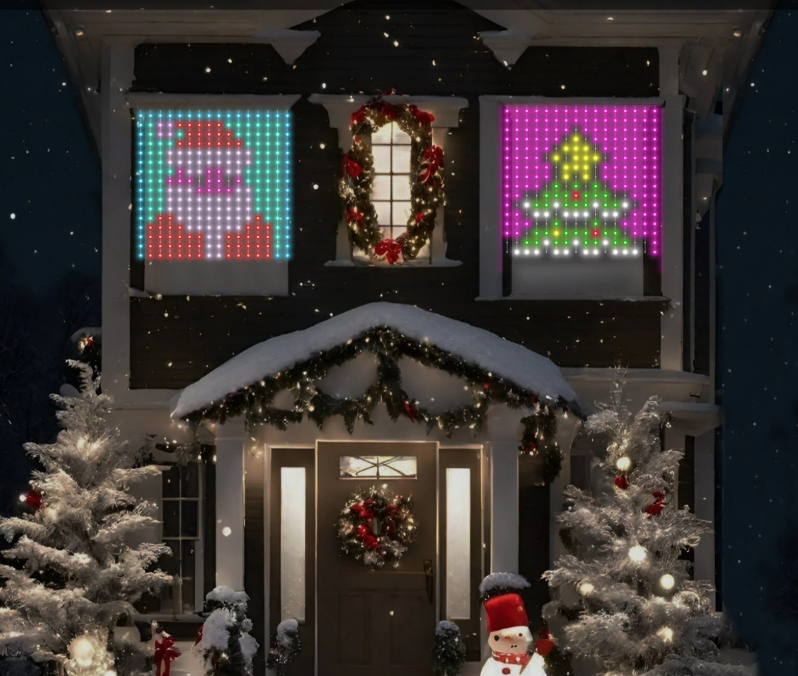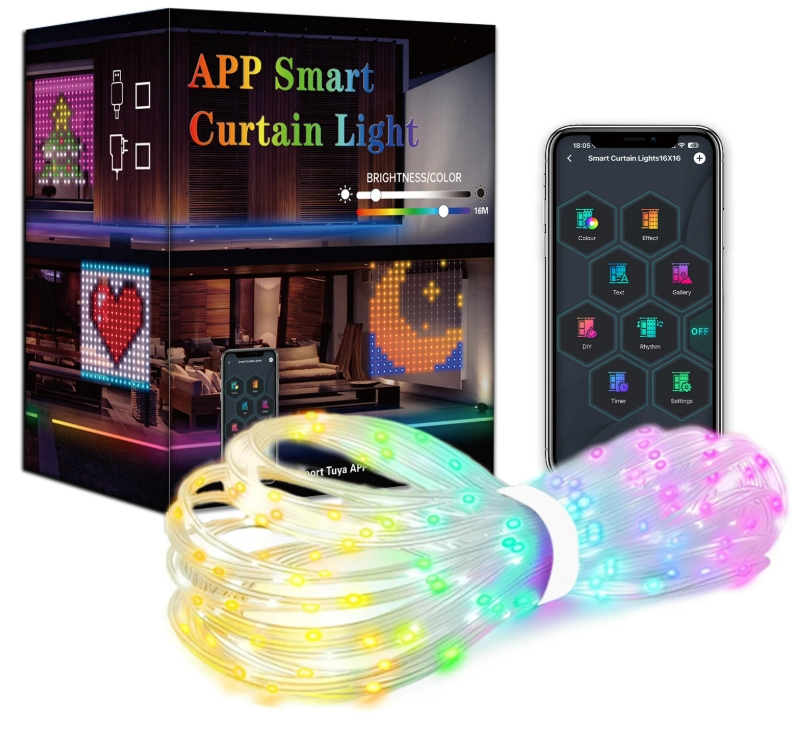 Az IDeal okos, színes LED-fényfüggöny egy igazán látványos, modern dekoráció, amelyet ablak, fal vagy akár terasz díszítésére is használhatsz. Tulajdonképpen egy nagy méretű, fénylő „függöny”, amelyen 256 apró, színes LED sorakozik szabályos rácsban, és mindegyik külön-külön vezérelhető.