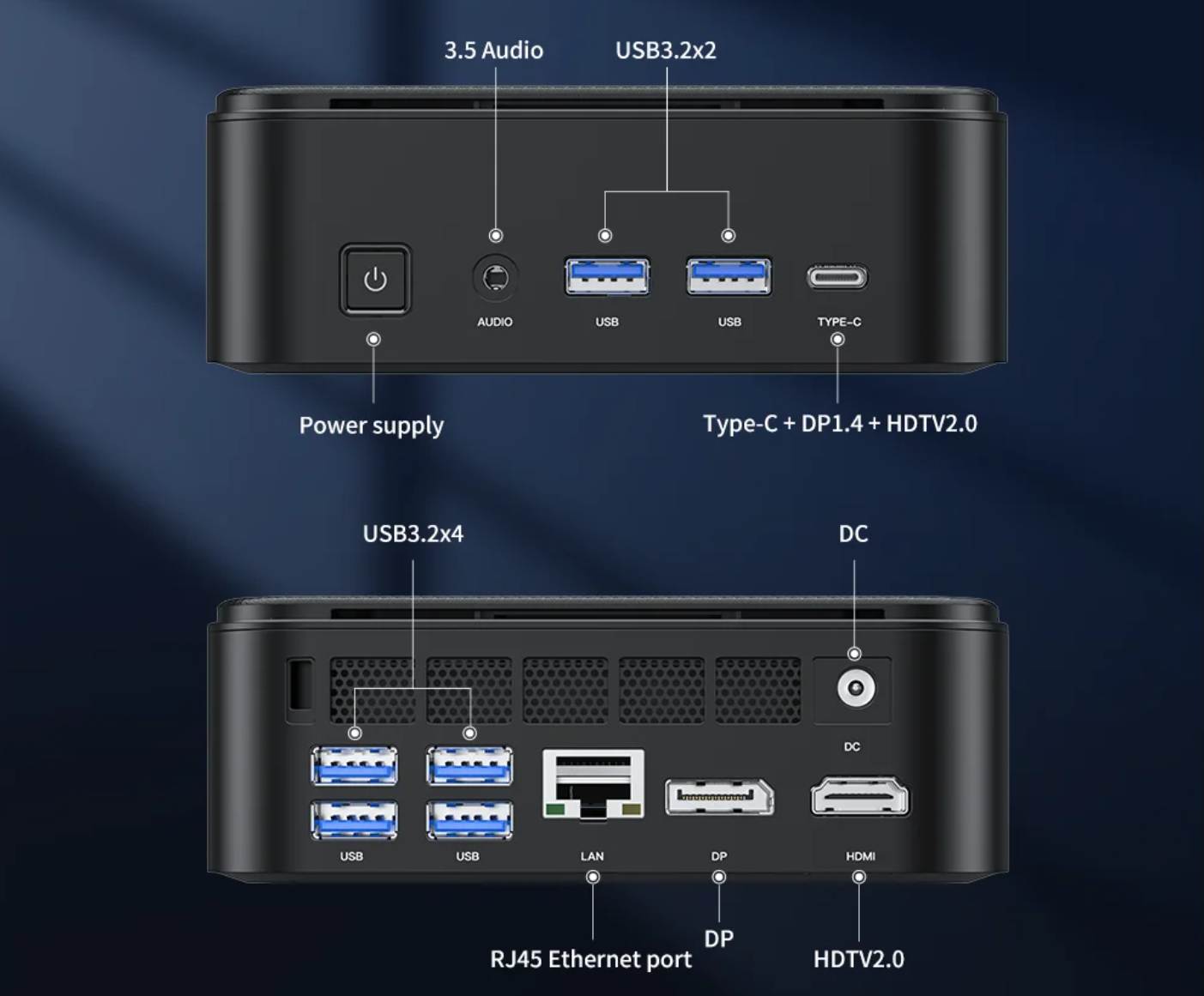 Bemenetekkel tökéletesen felszerelt, mert van 6db USB 3.2, 3.5mm jack, LAN, HDMI, DisplayPort, teljes funkcionalitású Type-C, amire monitort is lehet kötni és a szoftver is adott előtelepített Windows 11 által.