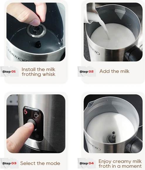 A gép négya módon használható, attól függően, hogy éppen mire van szükséged. Hideg tejhaboláshoz tökéletes választás, ha nyári jeges kávékhoz vagy frissítő italokhoz szeretnél habot készíteni. Pár másodperc alatt kész is vagy, anélkül hogy bármi melegedne.