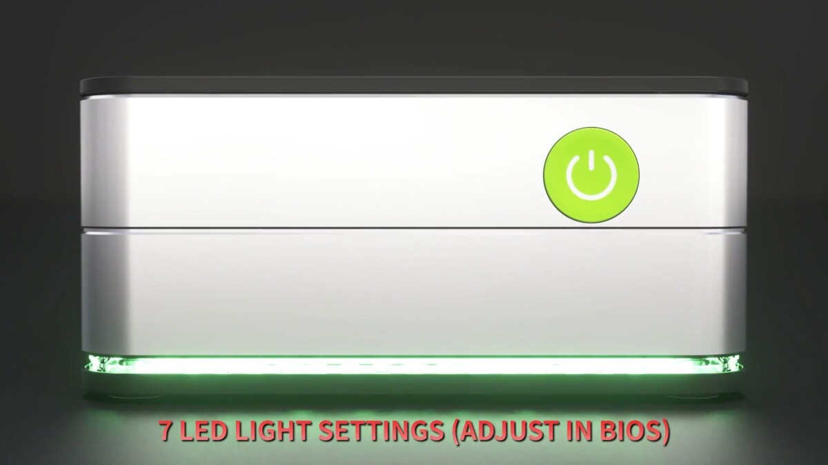 Egy szokatlan és látványosabb dizájnt kapott, mert a teteje lehet az alja és az alja a teteje is, mivel mindkettő kidolgozott és még körkörös világítása is van, amely RGB, átállítható.