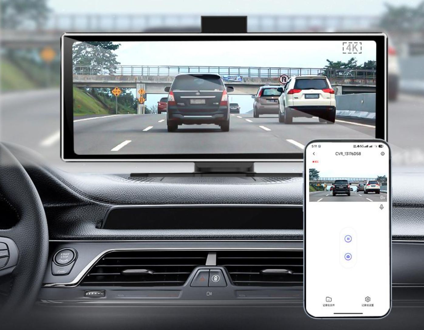 A kamerák külön kérhetők pár ezerért és az előre figyelő kamera 4K, a hátsó Full HD felbontású.