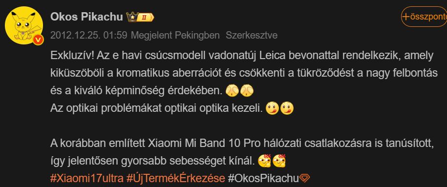 A megjelenés időzítése alapján a 17 Ultra még az év végén érkezhet Kínába, de a nemzetközi piacok valószínűleg csak 2026 elején kapják meg. A Xiaomi ezzel újra szeretné hangsúlyozni az Ultra széria szerepét, vagyis hogy ez a vonal mutatja meg a márka legfejlettebb technológiáit. Az idei modell pedig kifejezetten azt a célt szolgálja, hogy a fotózás visszaszerezze a vezető helyet a Xiaomi fejlesztési fókuszában.