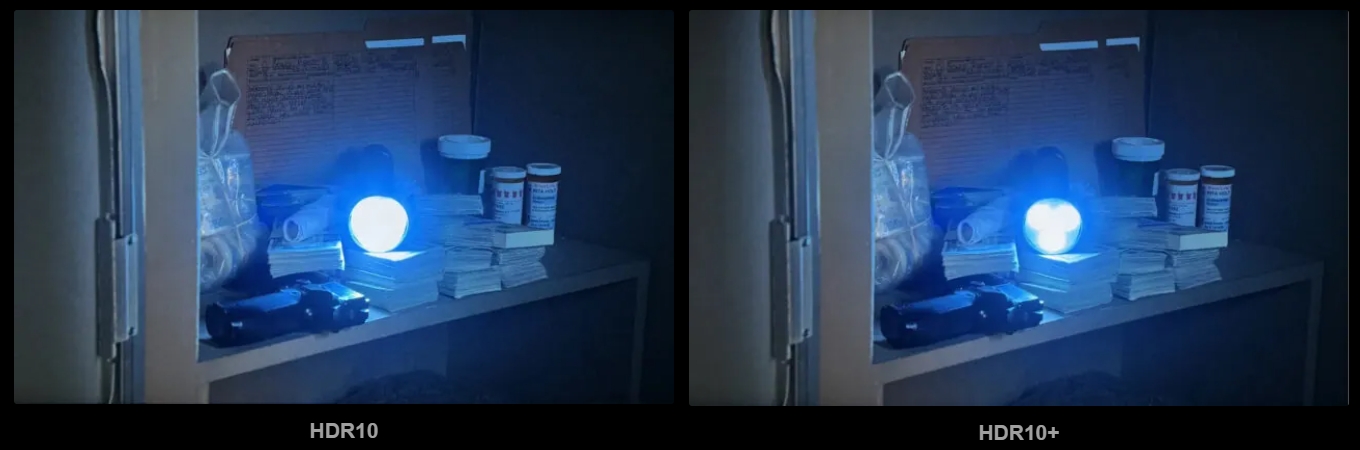 Ennek eredményeként kevesebb lesz a teljesen feketévé váló árnyék és a kiégett világos részlet, ami nagyobb vizuális hűséget eredményez. A különbség jobban megérthető a Netflix által megosztott képek alapján, amelyek egy jelenetet mutatnak HDR10 és HDR10+ formátumban. A HDR10+ változatban a zseblámpa részletei megmaradnak, és a fénysugár alatti terület nincs túlexponálva, ellentétben a HDR10 változattal.