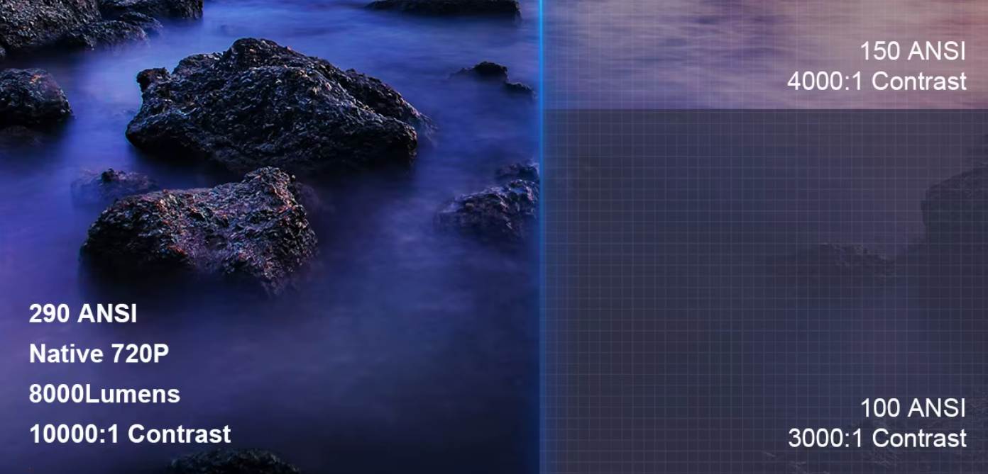Meglepően jó minőségben vetít, mert régebben ennyiért nagyon alacsony felbontást kaptunk, de ennek HD a felbontása és az árkategóriában szintén rendkívül jó, 290 ANSI Lumen a fényereje.