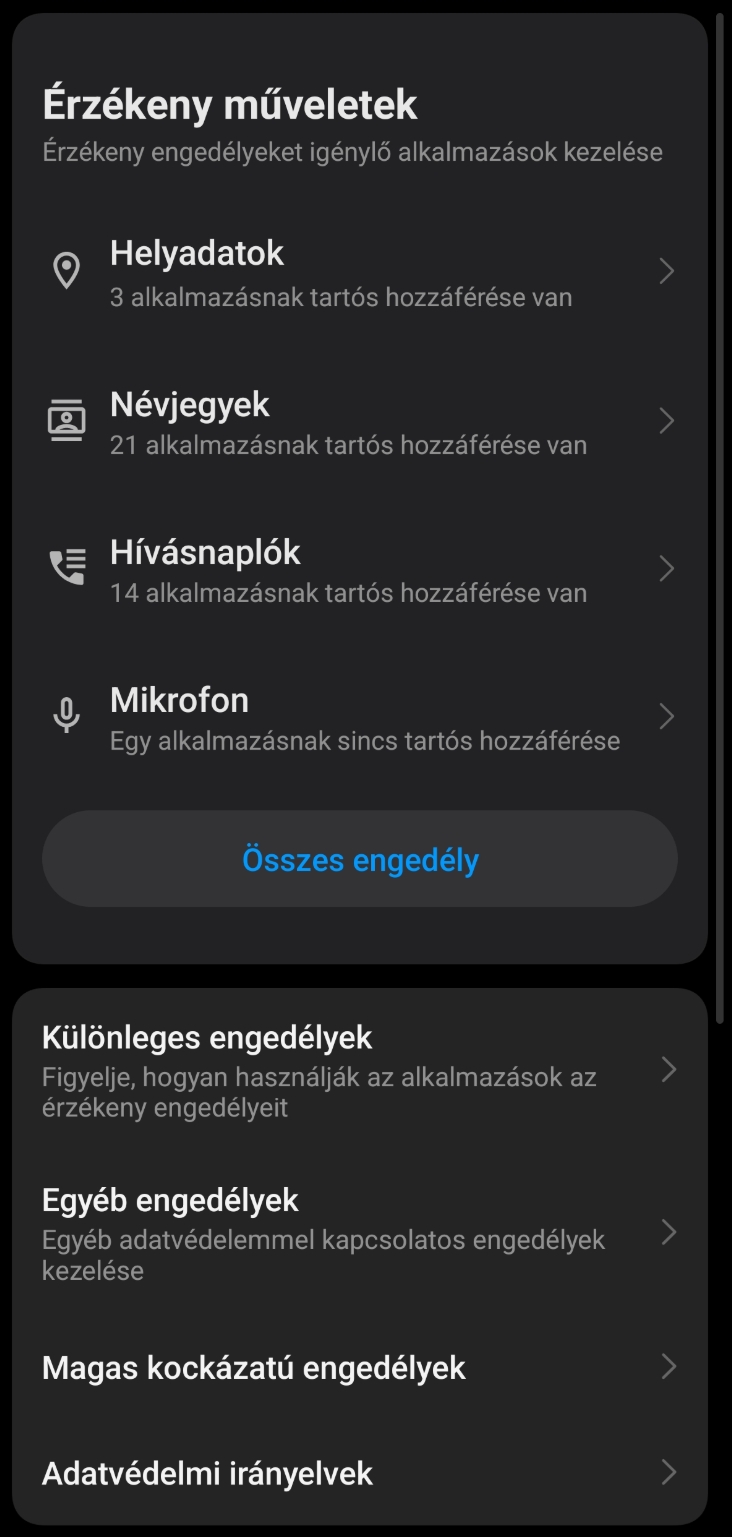 Itt azért vannak igen érzékeny engedélyek, mint a rendszergazdai alkalmazások, hozzáférés minden fájlhoz, értesítések olvasása, stb., érdemes átnézni.