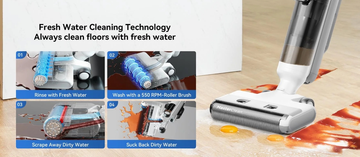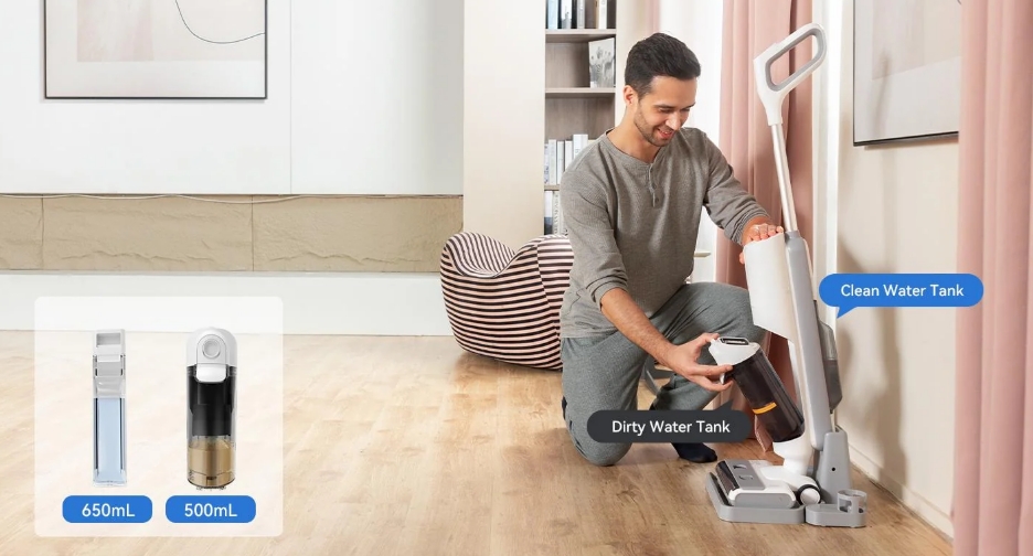 A dupla tartályos rendszer garantálja, hogy a padlóra mindig csak tiszta víz kerüljön, a szennyezett vizet pedig külön gyűjti. Ez különösen jól jön, ha kisgyerek vagy háziállat is van a családban, hiszen a higiénia tényleg elsődleges.