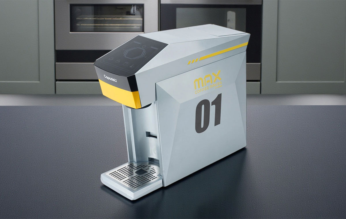 Jó eséllyel szinte soha senki nem látott még ilyen kávéfőzőt, mert itt a dizájner fantáziája nagyon meglódult és egy jellegzetes formát álmodott meg, ami akár egy jövöbeli otthonban is lehetne – vagy éppen egy gamer setup mellett.  😀