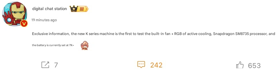 Bár az információk konkrétan egy „új K-szériás telefonról” szólna, a márka neve egyelőre nem tisztázott, de tekintve, hogy a Xiaomi évek óta feszegeti a Redmi K-széria teljesítmény/ár arányának határait, jó okunk van feltételezni, hogy ez a készülék valóban egy Redmi K90 lehet, amelyet kifejezetten a játékosok számára terveztek.