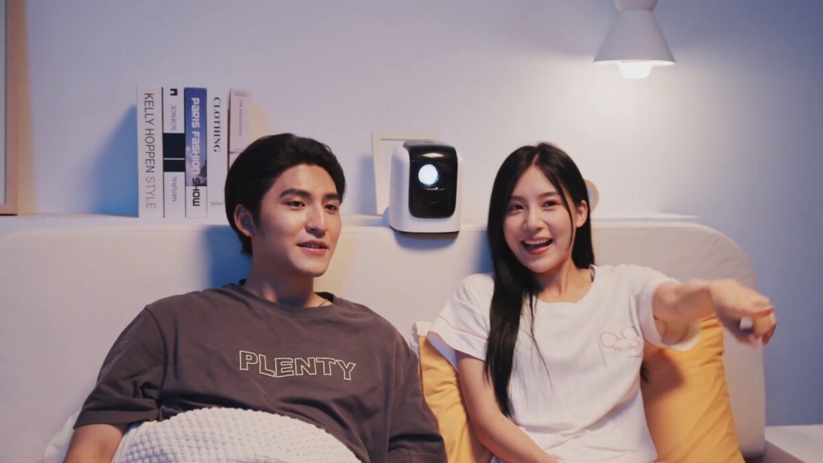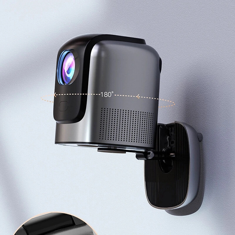 Egy elég érdekes, úgynevezett gimbal kialakítású projektor, ami által bárhova letehető és beállítható, hogy ha feljebb van a felület, ahova vetítenénk, akkor csak feljebb kell állítani.