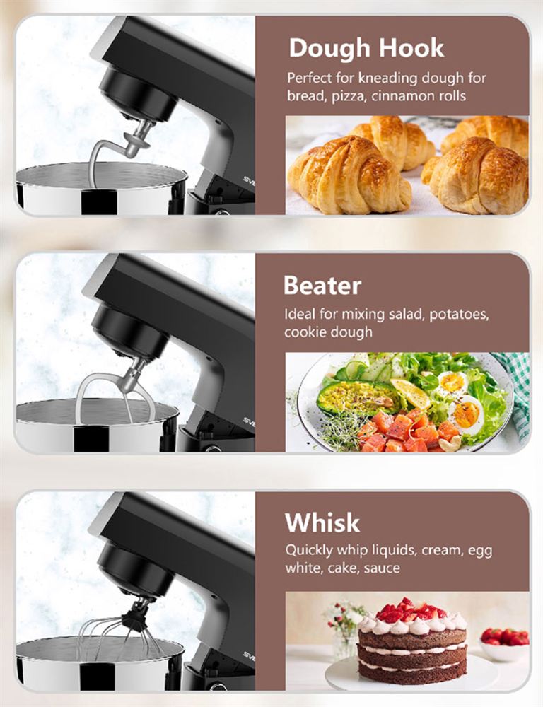 Az 5.5 literes rozsdamentes acél tál egy jól eltalált méret. Nem túl nagy, hogy feleslegesen foglalja a helyet, de nem is kicsi, simán belefér egy nagyobb adag süti vagy több adag pizzatészta. Használat közben az jön ki, hogy nem kell állandóan újrakeverni, mert egyszerre megvan az egész.