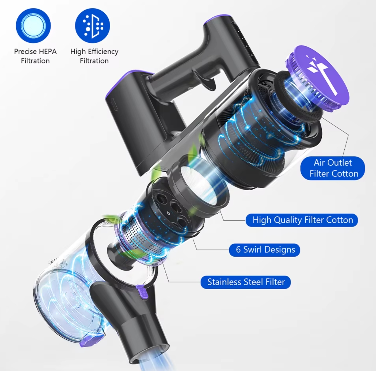 A begyűjtött szennyeződéseket alaposan szűri, köztük HEPA szűrővel is