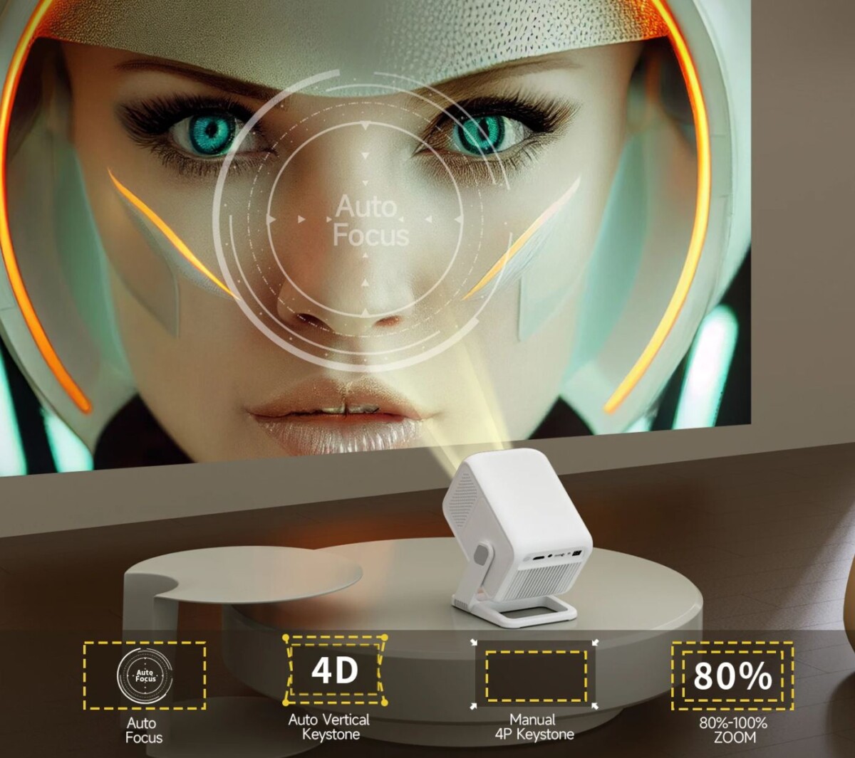 Ha felfele, vagy lefele vetít, akkor az alap esetben a kép torzulását okozza, de ezt képes önállóan és automatikus korrigálni, valamint azt is megoldja, hogy ne legyen homályos a kép, mert van automatikus fókusz.
