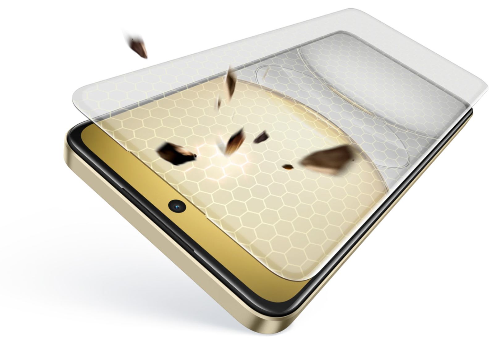 Az ArmorShell Glass védi, amely 35% lítium, alumínium és bór hozzáadásával sűrű, nagy szilárdságú védőpajzsot képez. Kiváló ütésállóságával és karcolásvédelmével ezt az innovatív üveget úgy tervezték, hogy ellenálljon az élet legkeményebb kihívásainak.