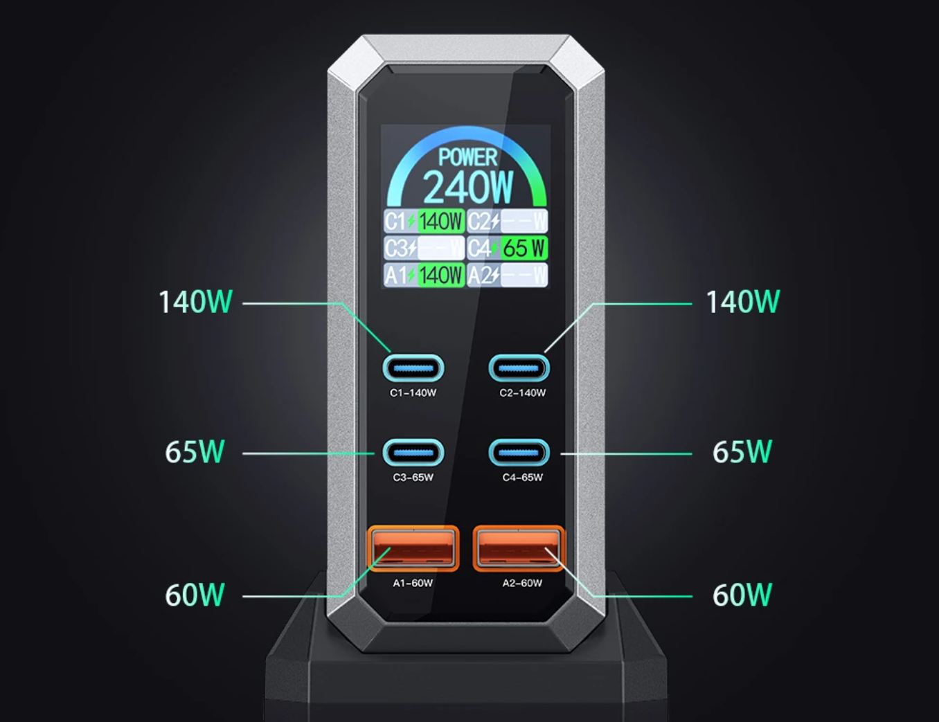 Neme kevesebb, mint hat eszközt tud tölteni egyszerre és két Type-C kimeneten is tud 140W-ot, valamint összesen 240W-ot.
