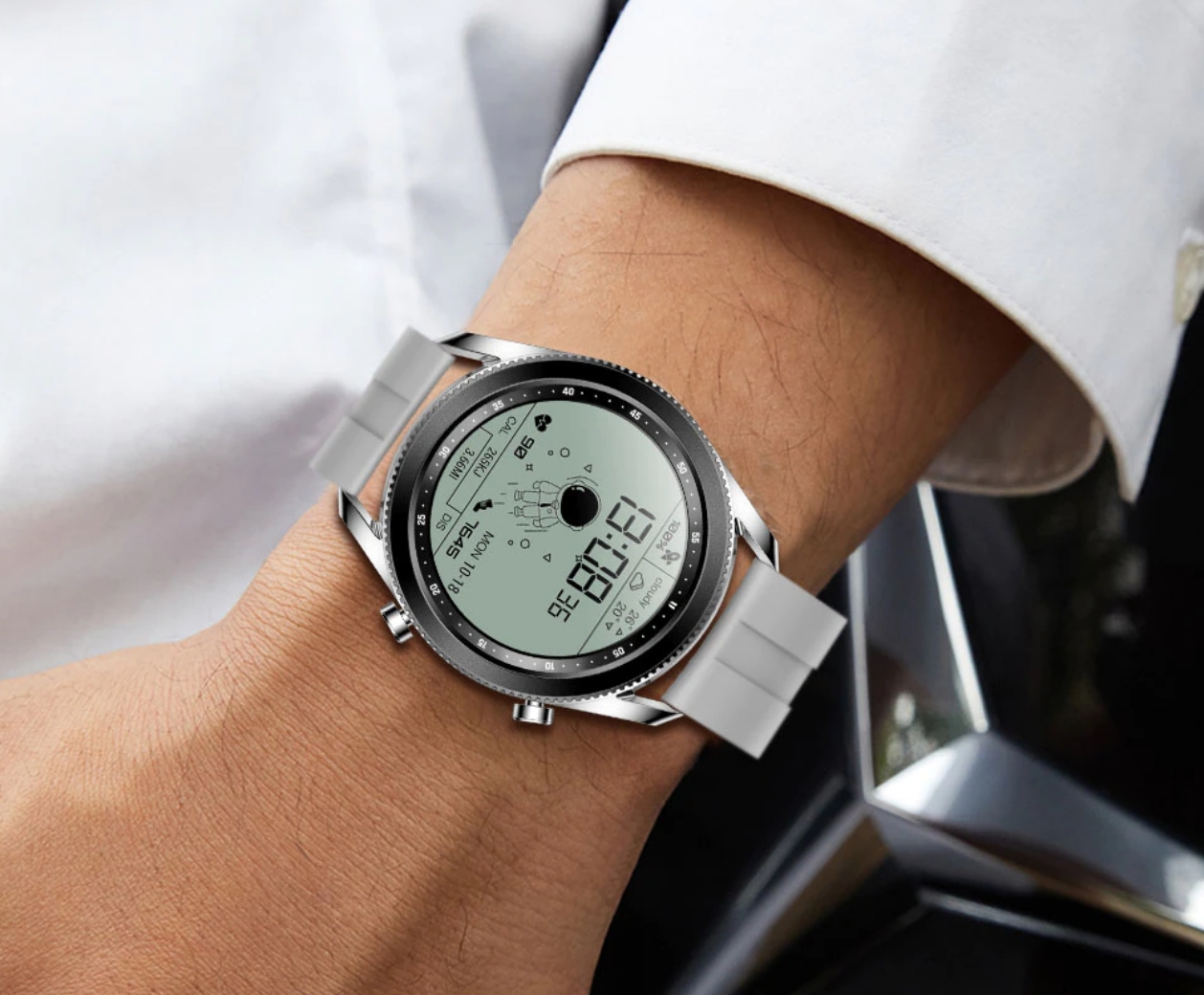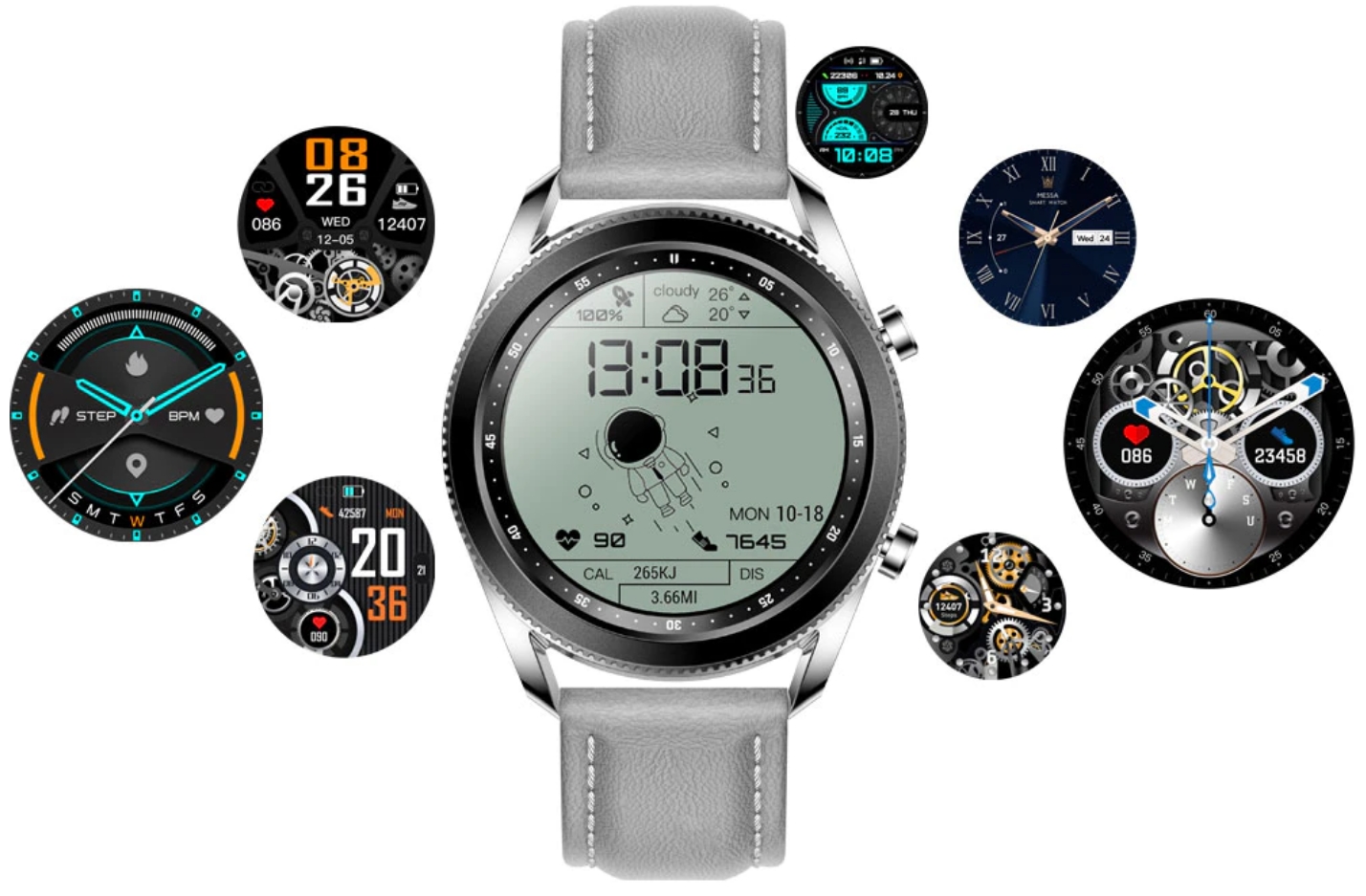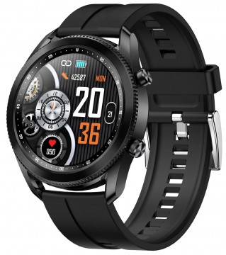 Egy kellemes dizájnnal rendelkező okosóráról van szó, recés kávával és fekete, vagy ezüst színnel, valamint két gombbal. A cserélhető szíja gyárilag lehet szilikon, vagy bőr.