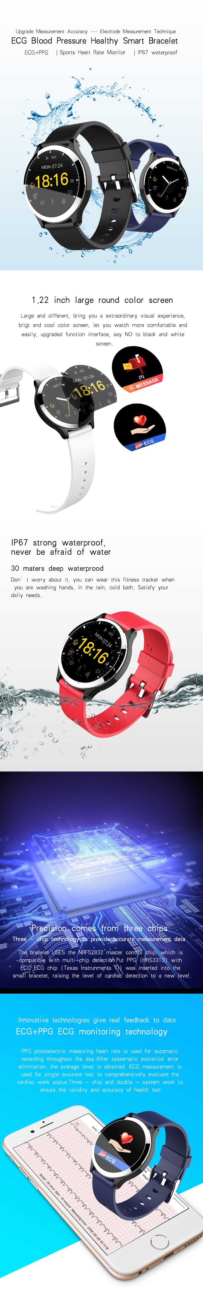 Bakeey B67 EKG okosóra okosóra beépített EKG szenzorral rendelkezik. Az EKG szenzor hasznos, hiszen képes lehet jelezni a különféle szív problémákat már akkor, amikor még csak kezdeti stádiumban vannak, így könnyebben megelőzhető a nagyobb baj.