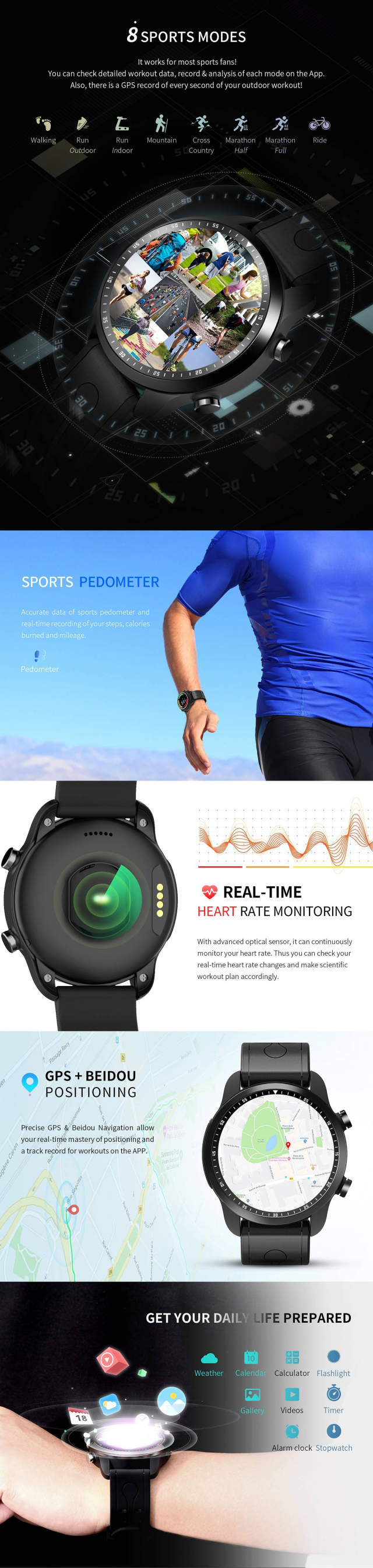 pulzusmérés, lépésszámlálás, GPS, sport módok