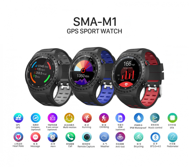SMA M1 okosóra okosóra beépített GPS-szel rendelkezik, így képes a megtett távolság pontos mérésére mobiltelefon nélkül is.