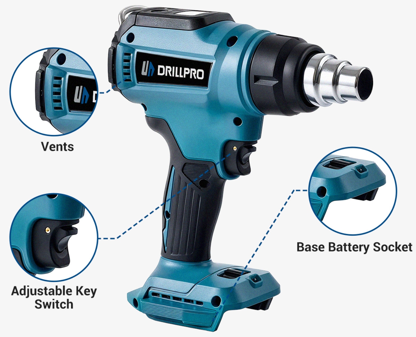 A hőmérséklet szabályozható tág tartományban, így 30 °C-tól egészen 650 °C-ig állítható, ami alkalmassá teszi a különböző feladatokra, legyen szó zsugorfóliázásról, festék eltávolításáról, hajlításról vagy forrasztásról.