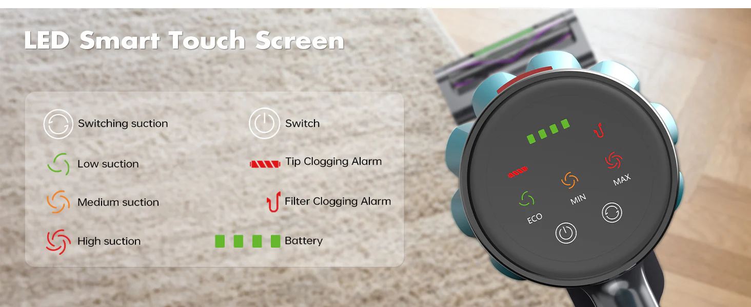 A Crosiko S15 esetében a gyártó egy érintőkijelzőt is beépített, amelyről a takarítási módok, az akkumulátor állapota és egyéb információk olvashatók, így a használat közben folyamatosan látható a gép állapota és könnyebb a vezérlés.