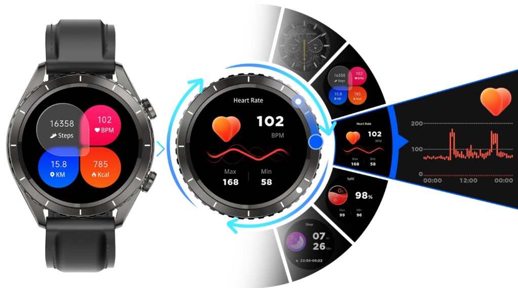 A Rollme Orbit 1 nem csak forgatható kávát ad, hanem AMOLED kijelzőt, AI funkciókat, mint a ChatGPT, AI által létrehozott óralapokat, bluetooth hívást és hosszú, akár 30 napos üzemidőt.