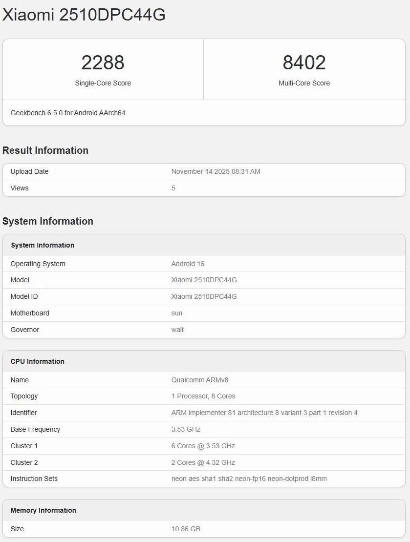 Nemrég a POCO F8 Ultra jelent meg a Geekbench adatbázisában, egy prototípus futtatta le a tesztet, amelyből kiderült, hogy a Snapdragon 8 Elite Gen 5 chip dolgozik benne.
