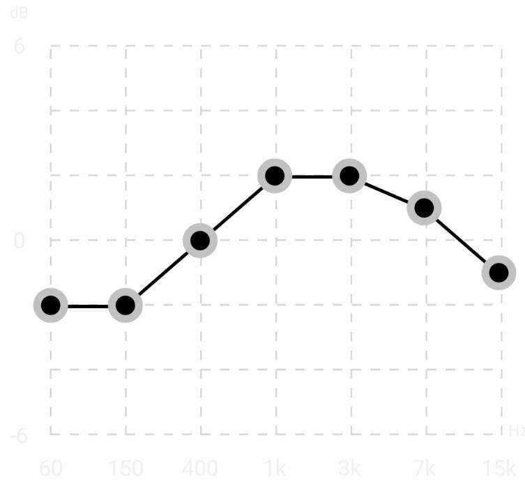 A középtartomány alap hangszín (pop) esetén kissé háttérbe tud szorulni, de három különböző hangzást tud: pop, basszus, erős basszus.