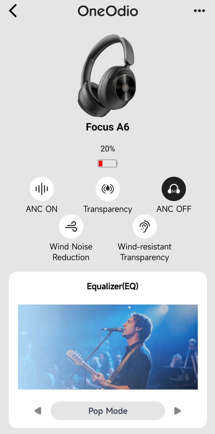 A OneOdio alkalmazás tartozik hozzá, amellyel frissíthető a fejhallgató szoftvere, elérhetők a különféle hangszínek, stb.