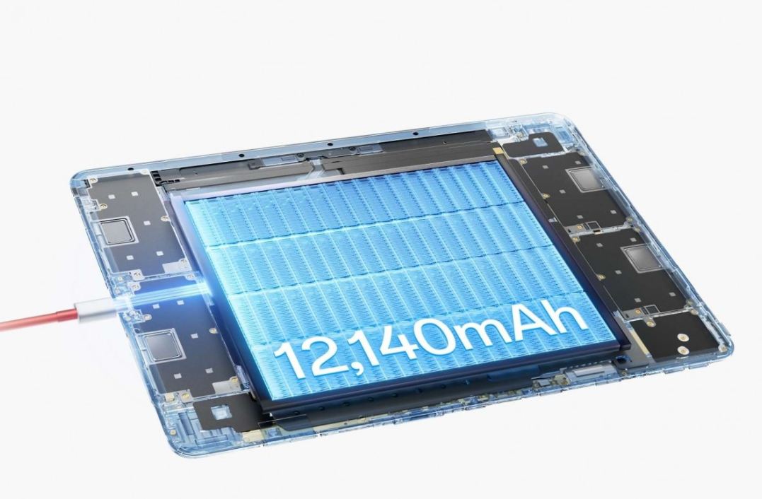 Az akkumulátor kapacitása 12140 mAh és Type-C csatlakozón keresztül tölthető nagyon gyorsan, 80W-tal.