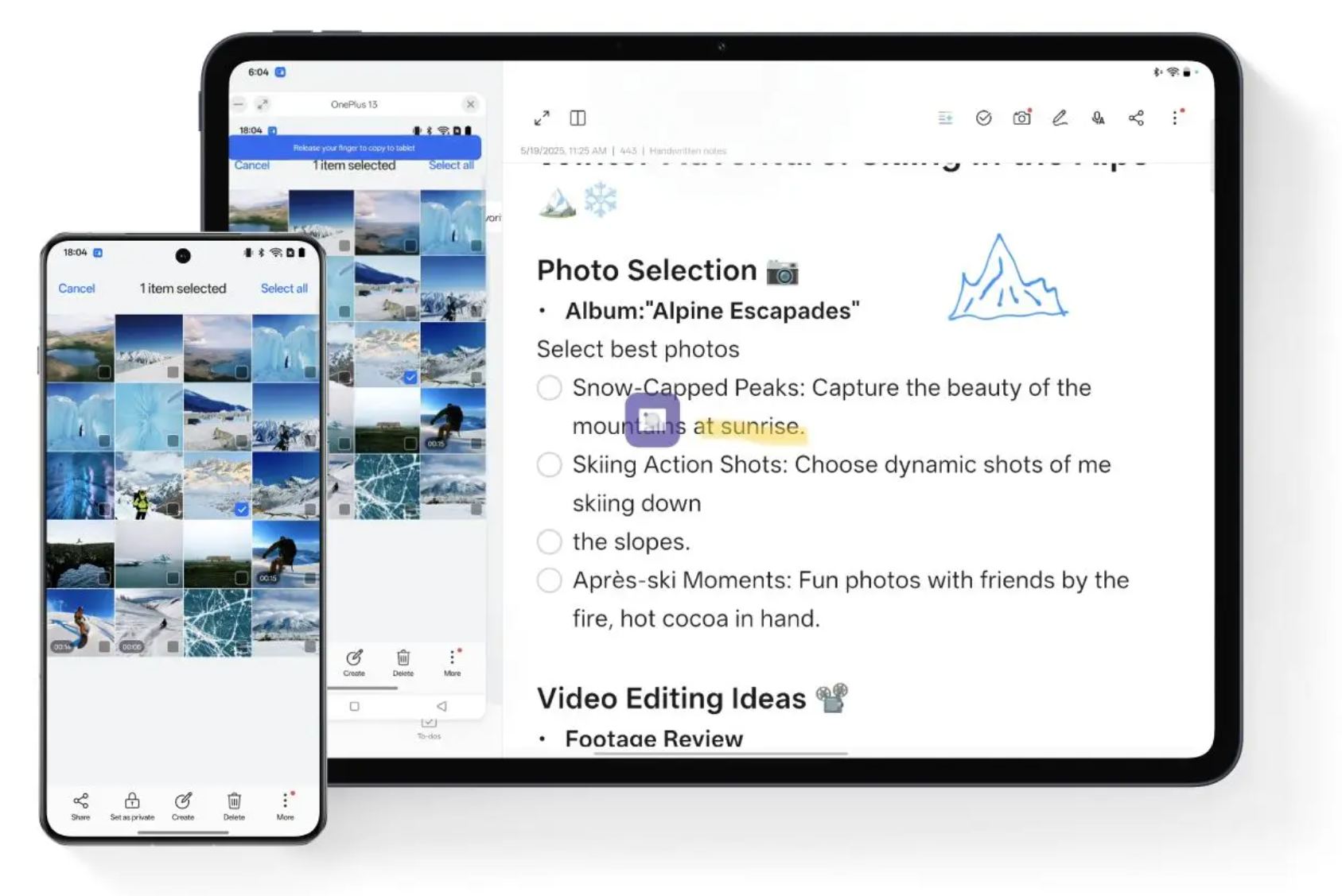A tablet és a OnePlus telefon között zökkenőmentes kapcsolat áll fenn, videó- és képszinkronizálással, sőt értesítésekkel és vágólappal is.