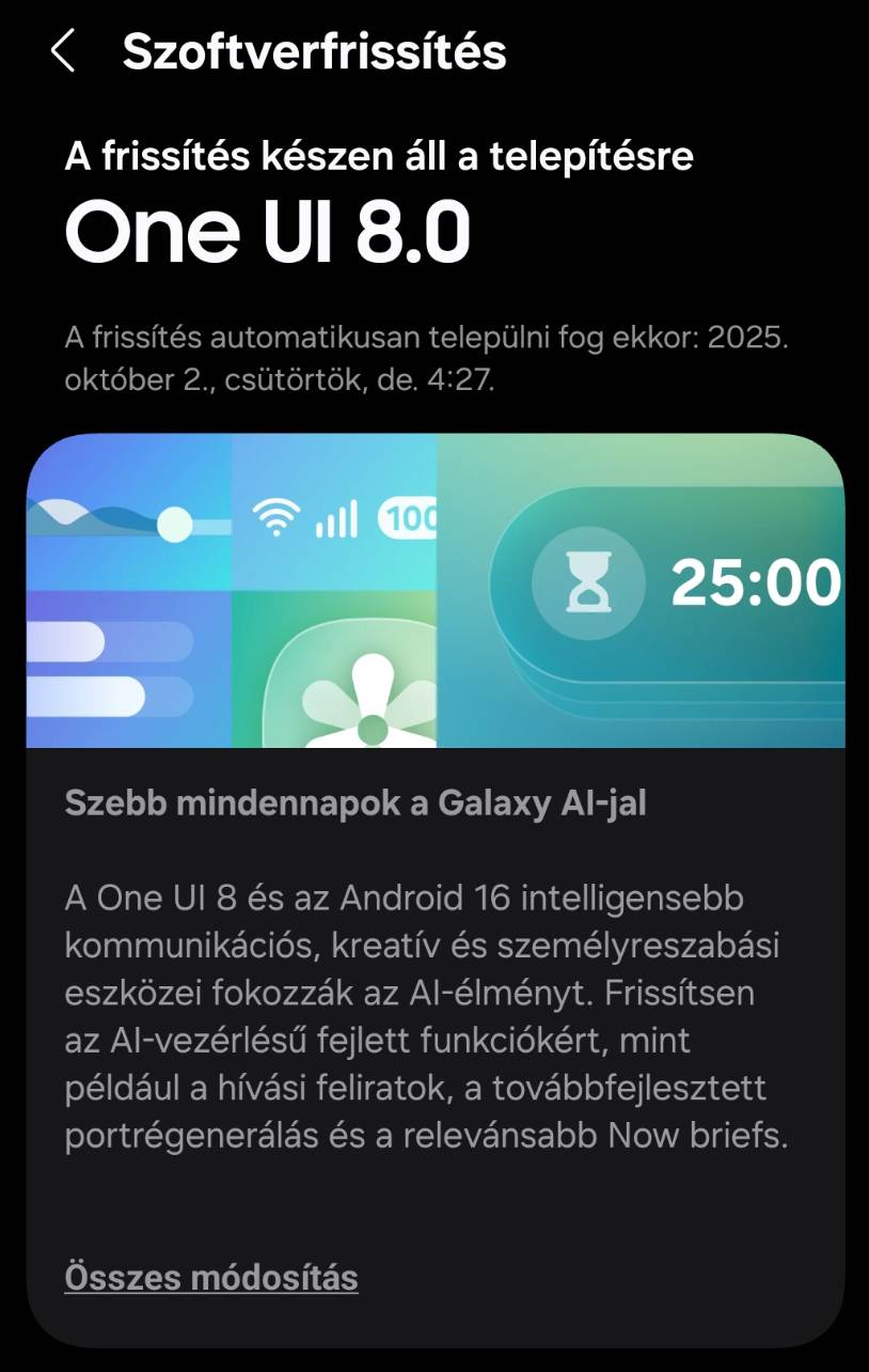 Ebben a hónapban a Samsung hivatalosan is elkezdte kiadni a One UI 8 frissítést. Az S25 sorozattal indultak, a 2024-ben megjelent főbb modellek már megkapták az új rendszert. A többi októberre van ütemezve.