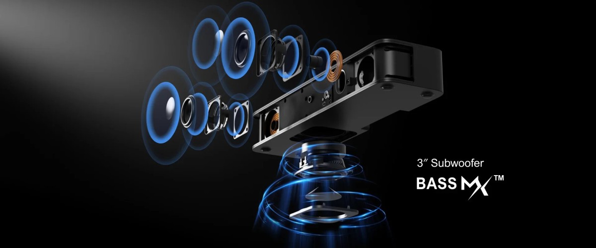 Szemben egy átlagos TV hangrendszerével, ami olyan 20W körül alakul, ez a soundbar 120W csúcsteljesítményt ad. És nem csak azt, mert egy beépített, 7,6 cm-es BassMX mélynyomó is került bele, amely kiváló basszusokat biztosít, erősítve a filmek és zenék élményét.