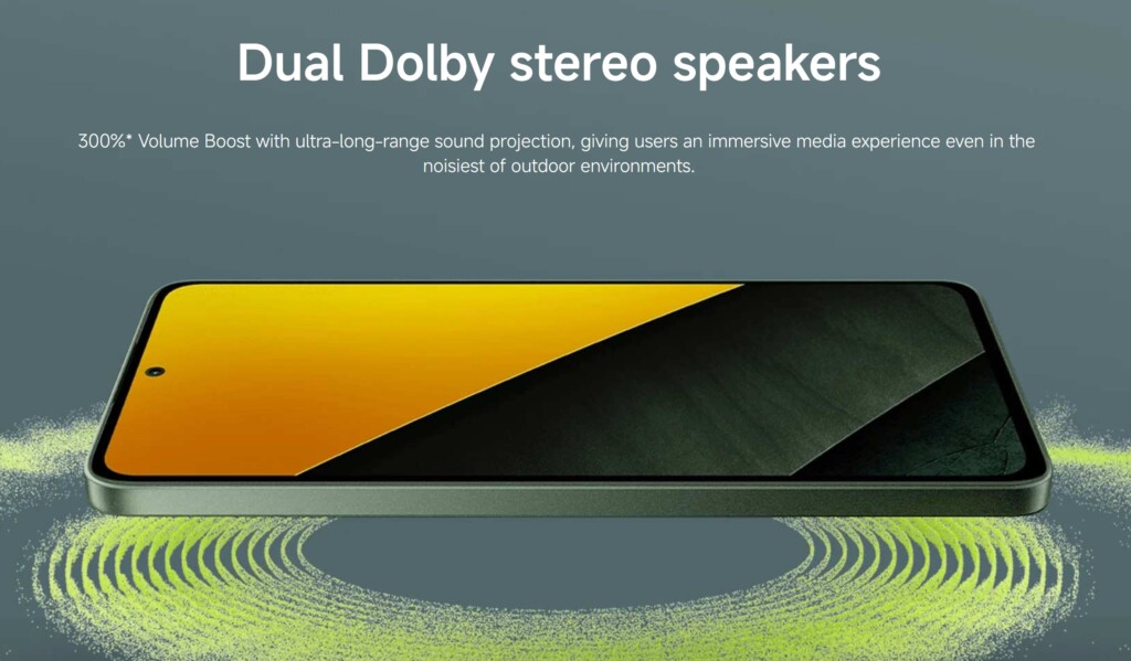 A dupla kamerás modul látványos, de nem tolakodó, a POCO logó pedig stílusosan helyezkedik el mellette. Az előlapon egy szinte teljes kijelző fogad, szupervékony kerettel és apró szelfikamerával középen.