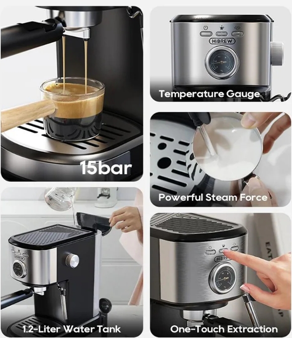 A HiBREW H5A fő vonzereje a 15 bar nyomású olasz pumpa, amely garantálja, hogy minden csésze kávé gazdag cremával és telt aromával készül.