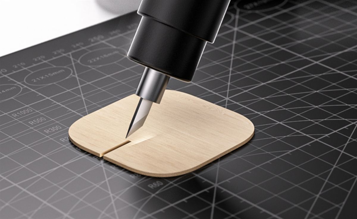 Mint látható, ebbe is kell tenni egy pengét, és valamennyi minimális irányítás kell, de a hagyományos értelemben vett nyomásra nincs szükség és így az anyagok nem deformálódnak.