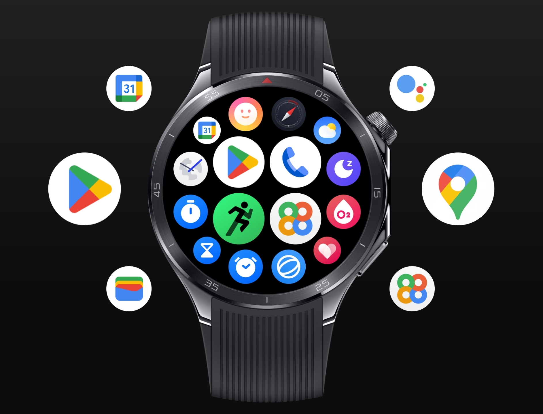100 sportot és mozgásformát támogatás és mivel Wear OS alapú, így tetszőleges alkalmazások használhatók edzés közben, például: