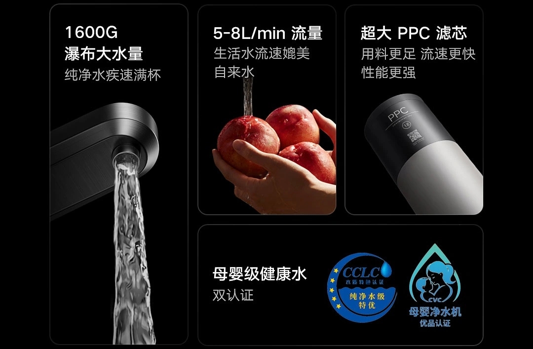 A Xiaomi szerint egy 150ml-es poharat mindössze 2.5 másodperc alatt lehet feltölteni, miközben a háztartási víz áramlási sebessége a hagyományos csapokéval vetekszik, 5-8L/min értékkel. Emellett egy nagy méretű PPC szűrőt is kapott, amely 32%-kal nagyobb, mint az előző generációkban, gyorsabb áramlást és jobb hosszú távú teljesítményt biztosítva.