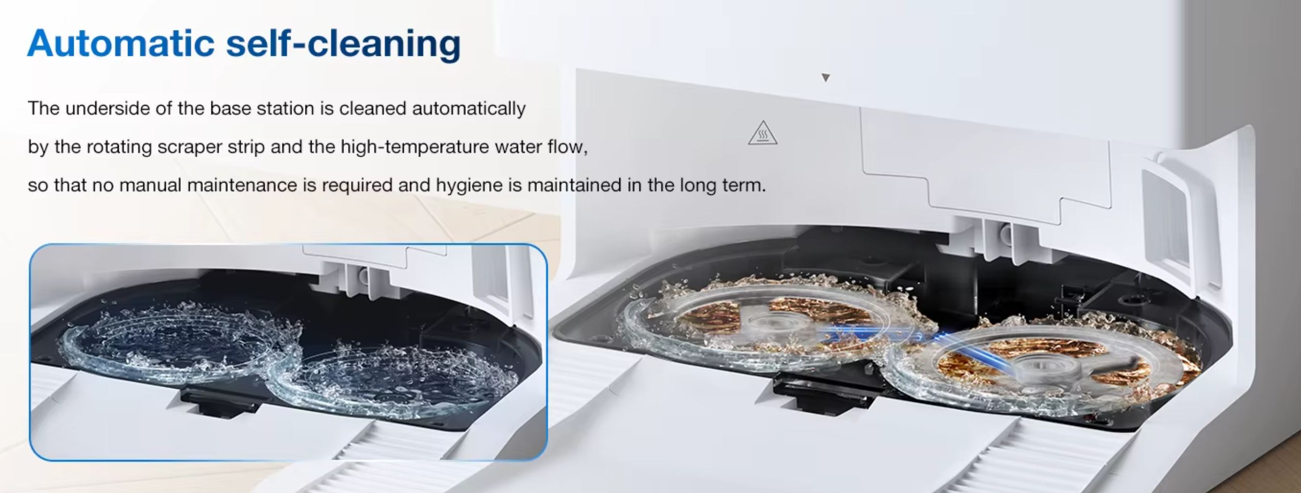 De annyira önállóan, hogy hozzá sem kell nyúlni, mert kiüríti a portartályát és nem csak robotporszívó, mert fel is most két gyorsan forgó moppal, amelyeket ki is öblít és megszárít. Szóval tényleg csak egyszer kell beüzemelni aztán teszi a dolgát.