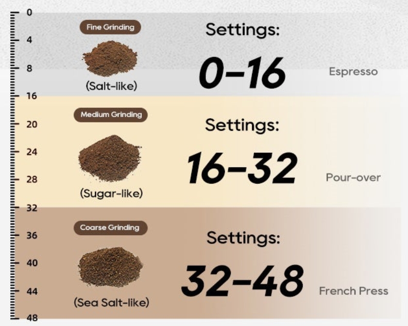 A 48 állítható fokozatnak köszönhetően mindenki megtalálhatja a saját stílusához illőt, legyen szó eszpresszóról, filterről, vagy akár french pressről.