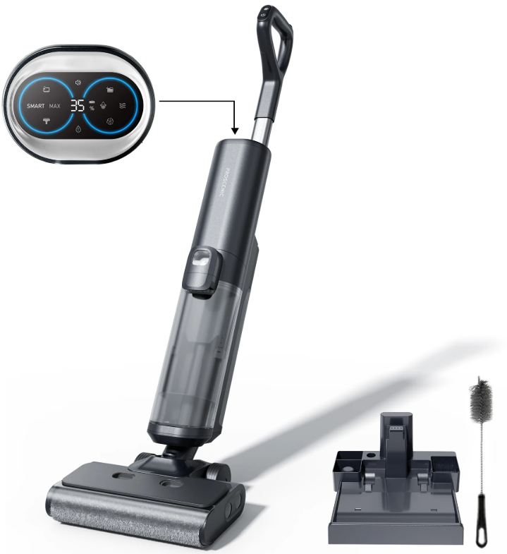 A Proscenic F20A igazi megváltás lehet, ha eddig a padlótisztítást inkább halogattad, mint vártad. Ez a készülék nem csak porszívóz, hanem fel is mos, ráadásul mindezt vezeték nélkül, egy kézmozdulattal.