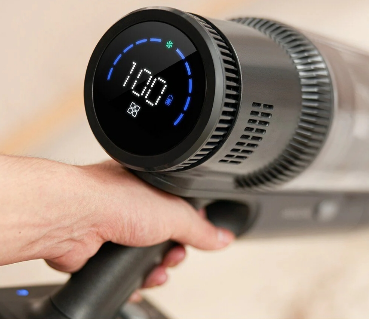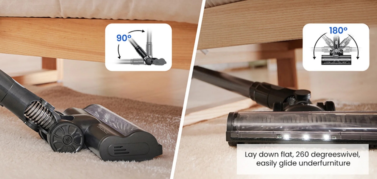 A kézi részben található érintőpanel intuitív kezelést biztosít, míg a teleszkópos cső könnyedén állítható a felhasználó magasságához. A 180°-ban fordítható fej miatt akár a bútorok alá is könnyedén beférünk, a beépített LED világítás pedig minden rejtett porcicát felfed.
